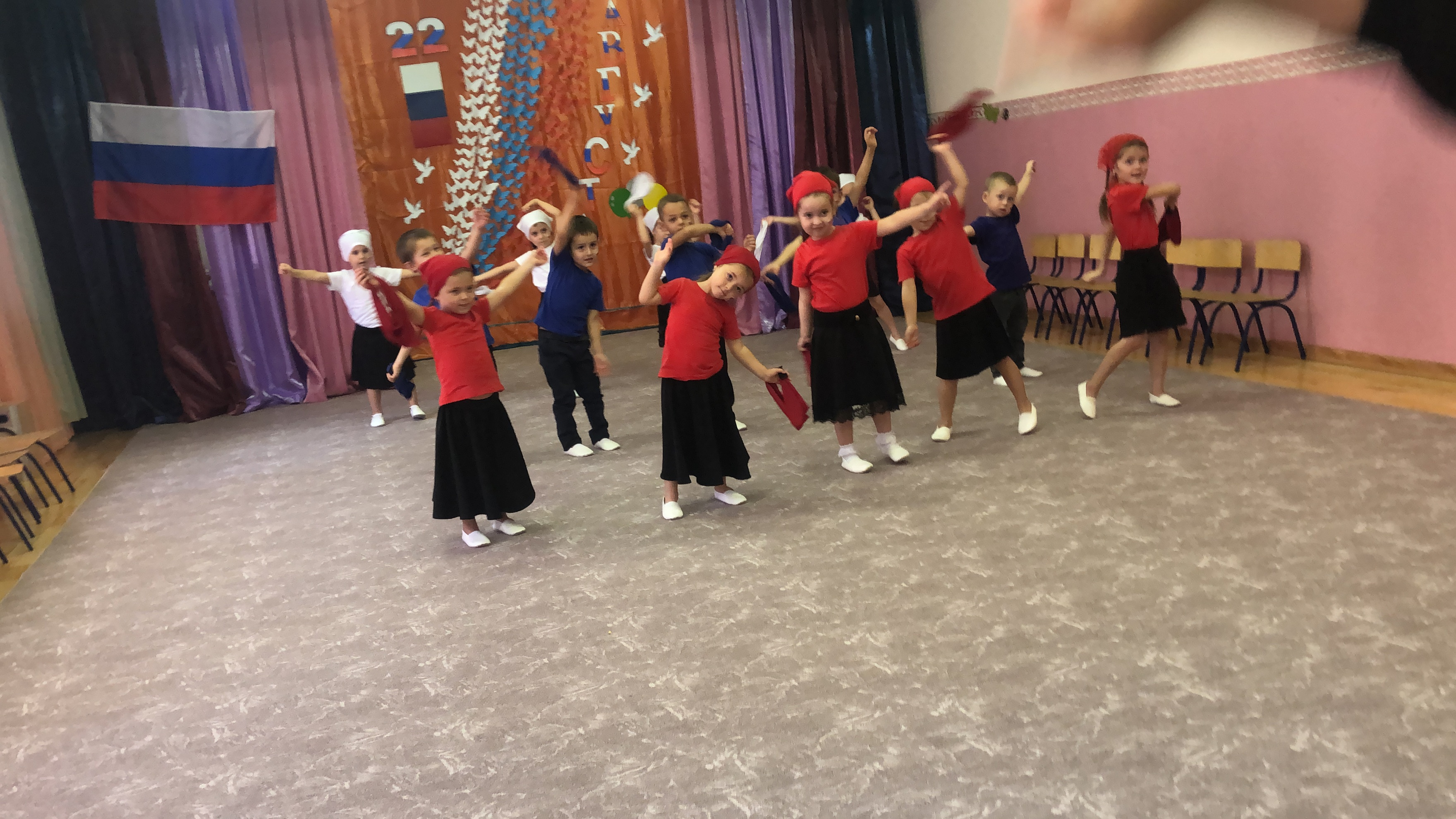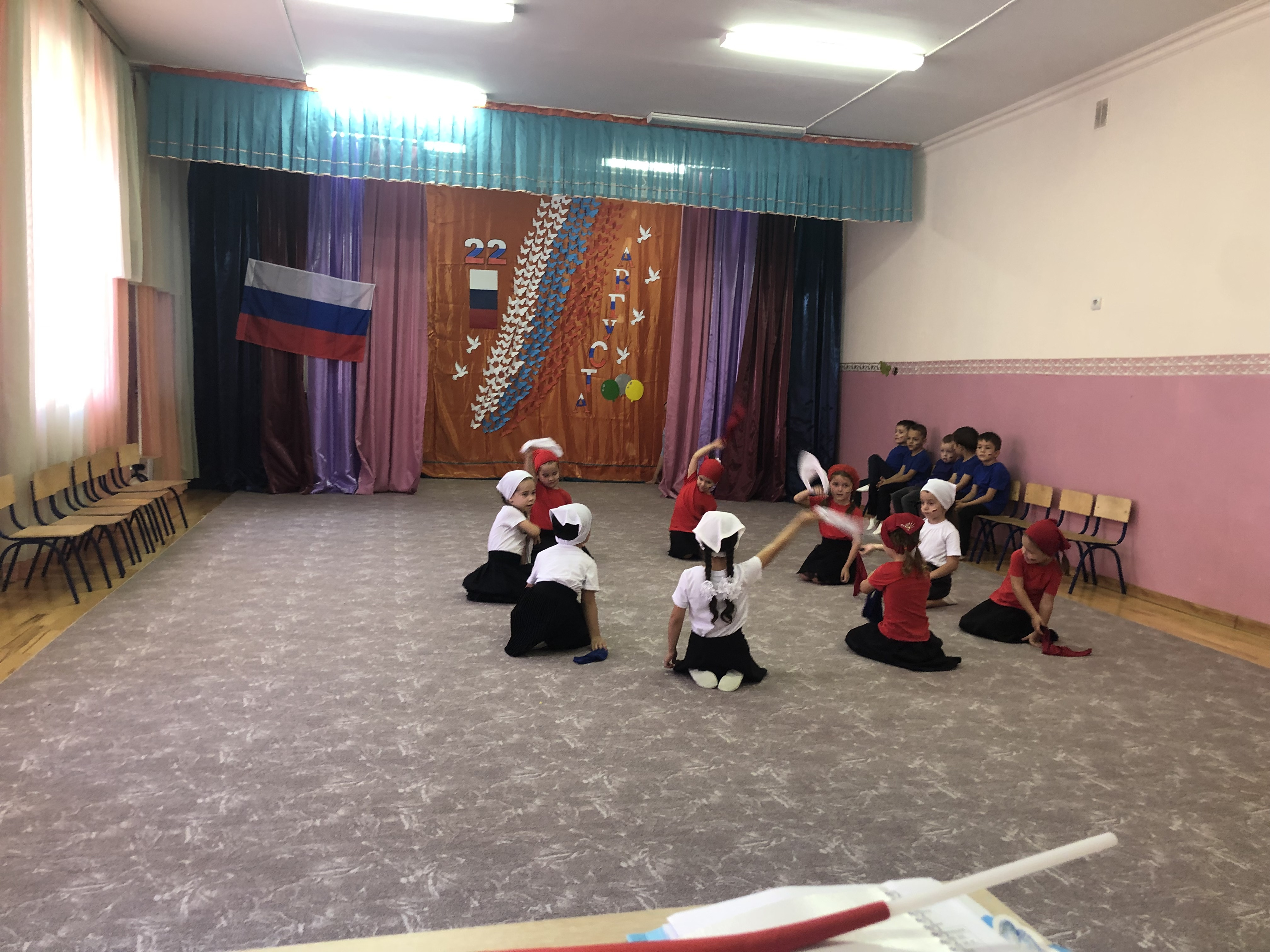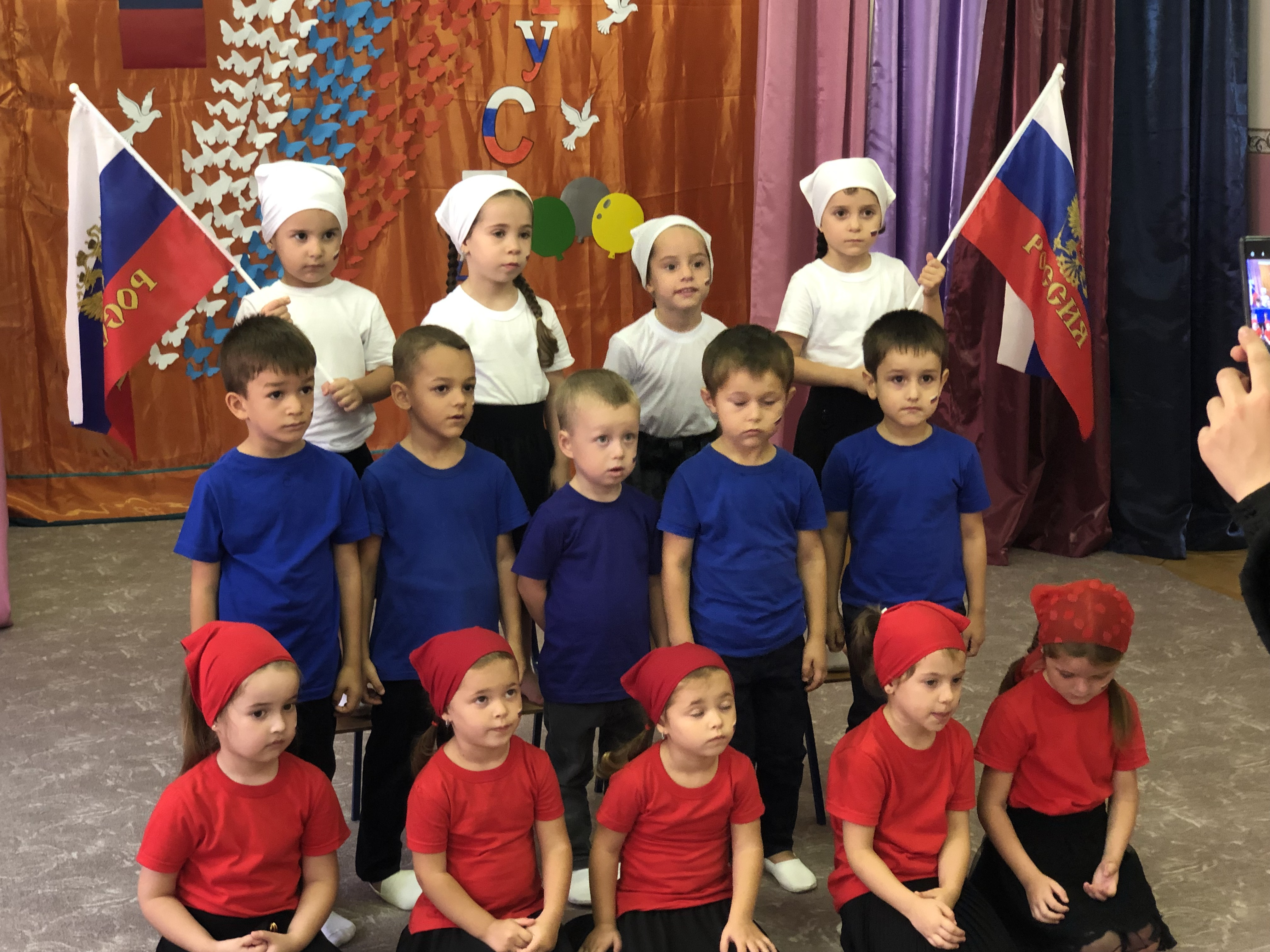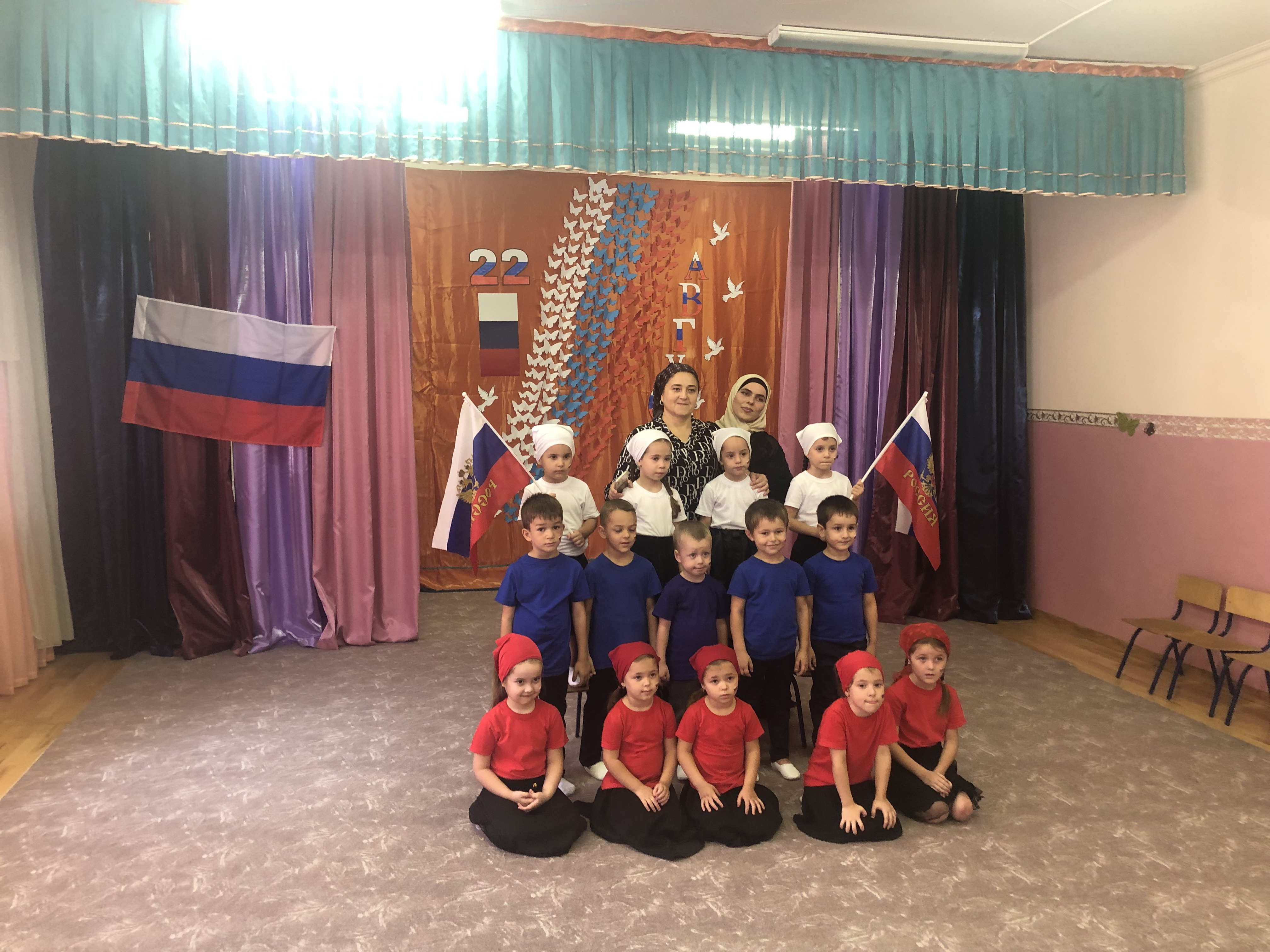 Дети средней группы «Солнышко» показали знание стихов о Российском Флаге, пели песни, танцевали .