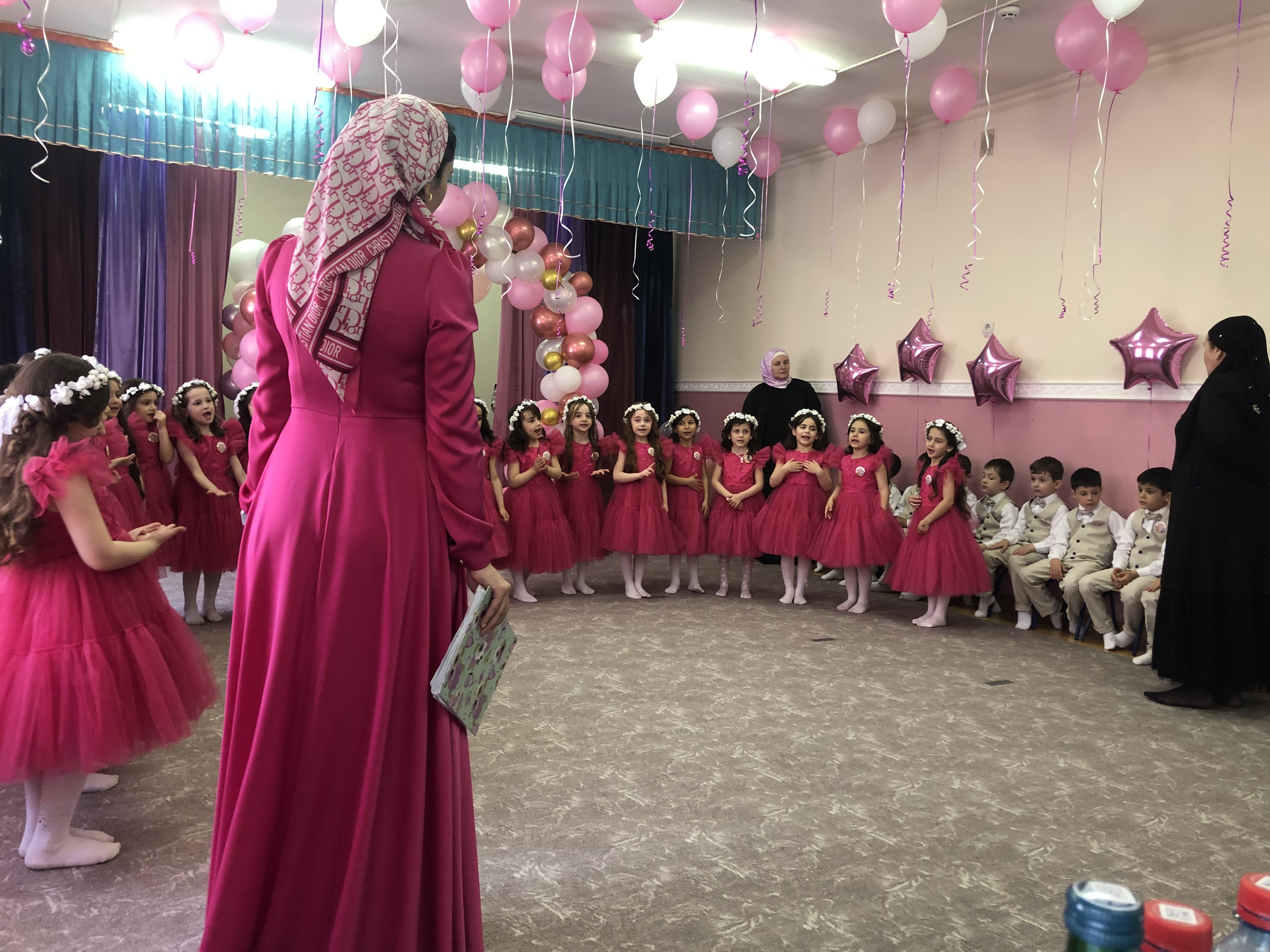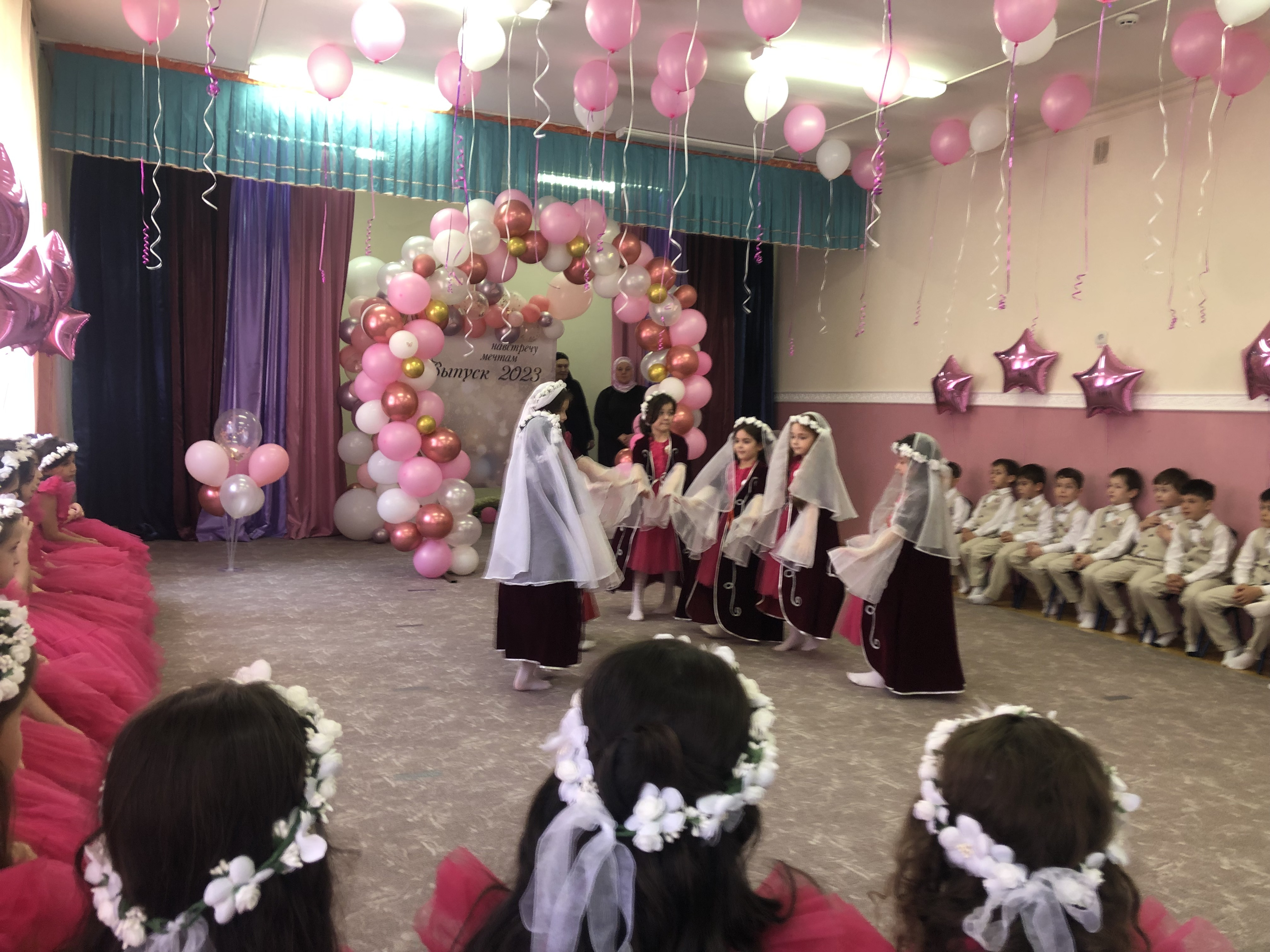 Вход в здание от двери до ворот протянулись шары. Под конец мероприятий во дворе дети выпускали шары в воздух и танцевали лезгинку.